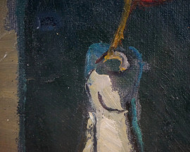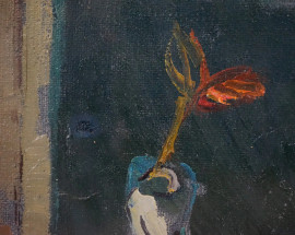 Oggetti sul davanzale, olio su tela, cm 80x59, entro cornice, (difetti)