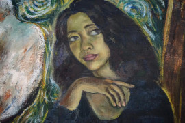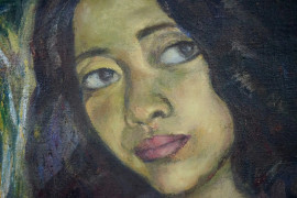 Ritratto di ragazza, olio su tela applicata su tavola, cm 85x75, firmato e datato Xiang Yung '94, entro cornice.