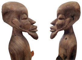 Scultura “Bamana”, Figura maschile, arte coloniale del Mali centro occidentale, inizi del XX sec., ebano scolpito, altezza cm 83, peso kg 10