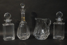 composto da 2 bottiglie da liquore, 1 brocca, 1 caraffa, 12 flutes da champagne, 11 bicchieri da vino rosso, 12 bicchieri da vino bianco, alt. max cm 32,5.