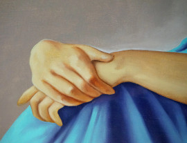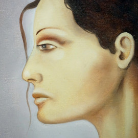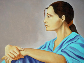 L'attesa, olio su tela, cm 51x61, entro cornice, con allegata autentica su fotografia.
