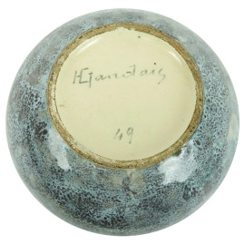 Vasetto globulare in ceramica smaltata, cm h 14, firma Henri Gandais alla base.