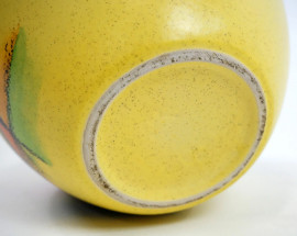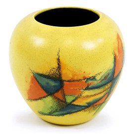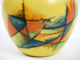 Vaso in ceramica gialla con decoro policromo astratto, XX secolo, cm h 16x18,5