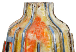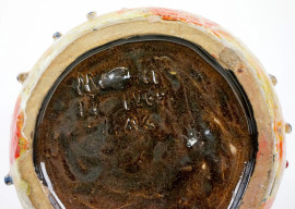 Vaso in ceramica smaltata nei toni dell'arancio, cm h 33, siglato e datato alla base, (lievi segni del tempo).