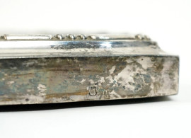 Vassoio a specchio con profilo in Sheffield, cm 40x61,5, XX secolo.