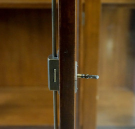 Vetrina in noce, XX secolo, a tre ripieni ed uno sportello a vetri, cm h 187x37,5x98,5, (difetti).