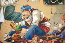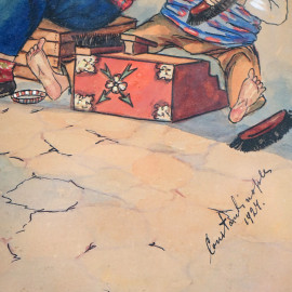 Vignetta satirica, I lustrascarpe - Costantinopoli, tecnica mista su carta, cm 28x18,5, datata 1824, entro cornice
