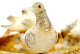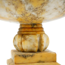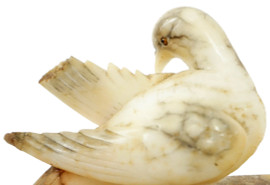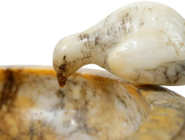 Acquasantiera in alabastro con quattro colombe, cm h 34x44, fine XIX-inizi XX secolo, (difetti e restauri).