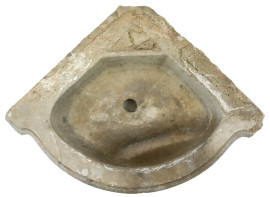 Acquasantiera in marmo, cm h 13x59,5x43, XIX secolo, (difetti).