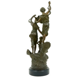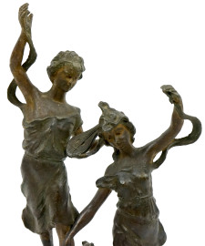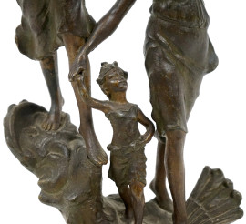 Allegoria della musica, gruppo scultoreo in antimonio con base in legno, cm h 46, Francia, inizi XX secolo