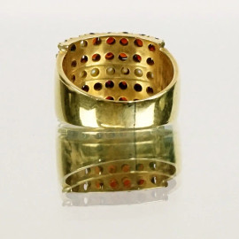 Anello in oro giallo 18 KT con granati e microperle, misura 9, peso gr.7, (mancante un granato)