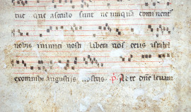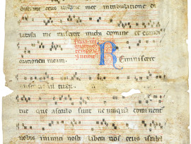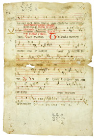Antica pagina manoscritta su carta pergamena, cm 41x27,5, (difetti e macchie).