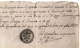 Antico manoscritto del 1822 composto da 14 pagine, reca Bolli Papali