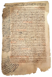 Antico manoscritto persiano in caratteri arabi vergati a inchiostro bruno e lacca rossa