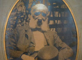 Anziano con cappello, fotografia d'epoca ai sali d'argento, ad assetto ovale, cm 33x23, entro cornice