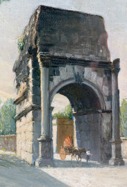 Arco di Druso sulla Via Appia, olio su tela, cm 47x37, firmato, entro cornice.