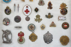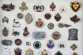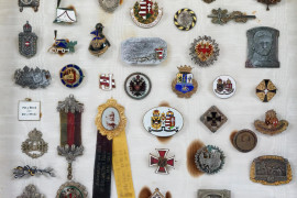 Bacheca contenente varie medaglie di epoche e paesi diversi, ingombro tot cm 58,5x35, (difetti).