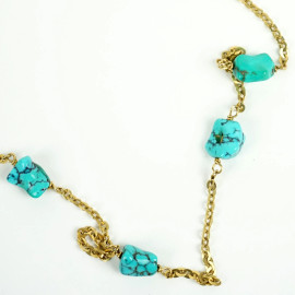 Catenina in oro giallo 18 KT con applicazioni in turchese, lughezza cm 77,5, peso gr.18,8