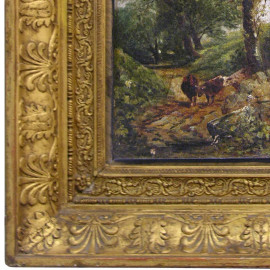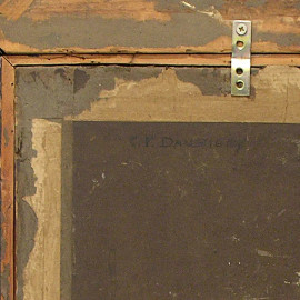 L'opera è inserita entro importante cornice coeva in stile Impero in legno riccamente scolpito e decorato con foglie d’acanto, doratura a oro zecchino e patina coeva, l’opera è riferibile al Maestro e reca al retro in alto a sinistra iscrizione postuma “C.F. Daubigny”