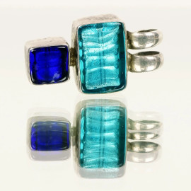 Ciondolo in argento 925 e con inserti in vetro blu e celeste, cm 3,5x2