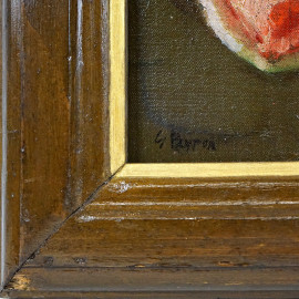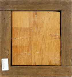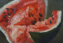 Cocomero, olio su tela applicata su tavola, cm 26x24, firmato, entro cornice.