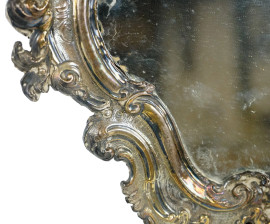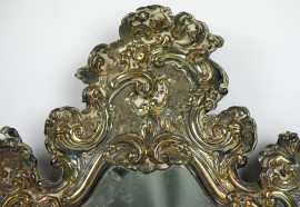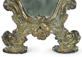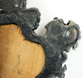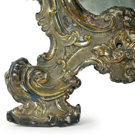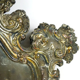 di forma sagomata, decori incisi e sbalzati a volute e foglie.