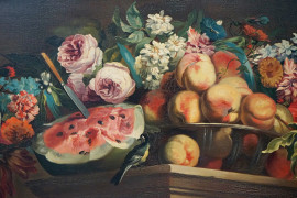Coppia di nature morte, olio su tela, cm 61x197, a firma F.Pagnotta, entro cornici