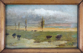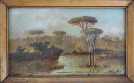 Coppia di paesaggi, olio su tavola, cm 11x18, firmati, entro cornici