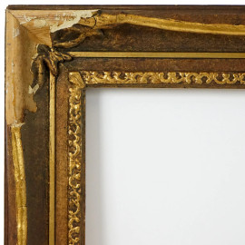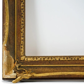 Cornice in legno e stucco intagliato e dorato, XX secolo, misure ingombro cm 99x86,5, misure luce cm 83,5x70,5, (difetti).
