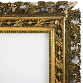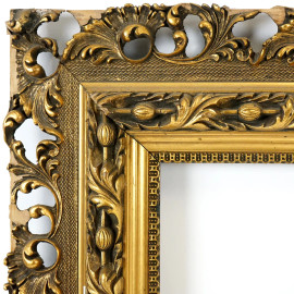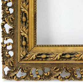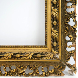 Cornice in legno intagliato e dorato, XX secolo, misure ingombro cm 116x95, misure luce cm 89,5x70, (difetti),