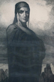 Dante, incisione, cm 95x64, Francesco Blasetti incisore Roma, entro cornice, (difetti)