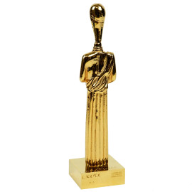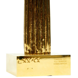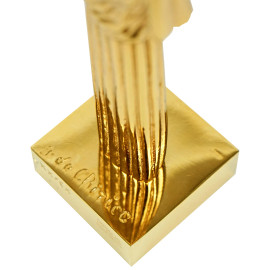Musa dell'Antiquità, multiplo in bronzo dorato, cm h 24, n. di serie LXX/CX, firma incisa e timbro della Fonderia Art. F.lli Bonvicini Sommacampagna.