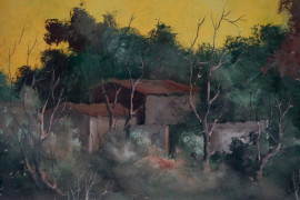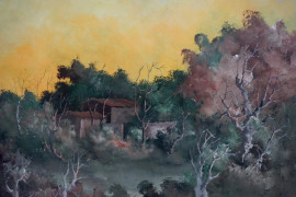 Paesaggio, olio su tela, cm 51x71, entro cornice