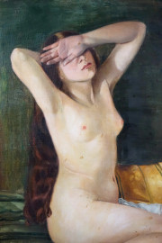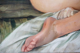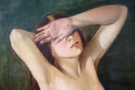 Nudo di donna, olio su tela, cm 96x86, entro cornice