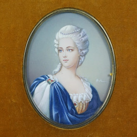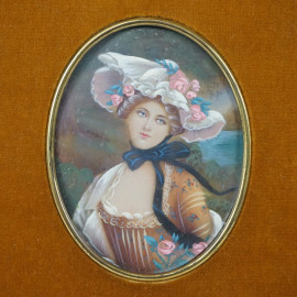 Due miniature dipinte ad assetto ovale raffiguranti nobildonne, cm 8,5x6,5, fine XIX secolo, entro cornici.