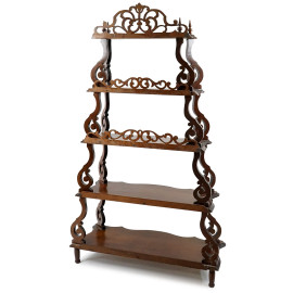 Etager di linea mossa in noce, fine XIX secolo-inizi XX secolo, a cinque ripiani sagomati, cm h 155x92x32