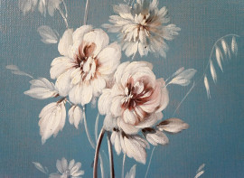 Fiori, coppia di dipinti ad olio su tela, cm 201x57, prima metà XX secolo.