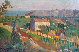Francavilla dalla collina, olio su tavola, cm 20x30, firmato, entro cornice.