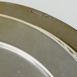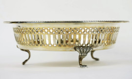 Fruttiera in argento traforato, poggiante su tre piedini cesellati desinenti a zampa ferina, bolli Petruzzi & Branca, Brescia, XX secolo, cm 7x20, peso gr. 120, (difetti)
