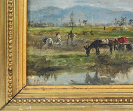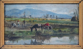 Fusaro delle Zoccole - Studio dal vero, olio su tavola, cm 9,5x17, firmato, entro cornice.