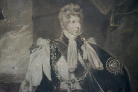 His Royal Highness The Prince Regent, incisione, cm 65x43,5, da John Hopner (1758 – 1810) , incisore William Say (1768 – 1834), XIX secolo, entro cornice, (difetti)