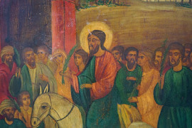 Icona raffigurante l'ingresso di Gesù a Gerusalemme, Russia centrale, metà XIX secolo, tempera su tavola, cm 36,5x30,5, (lievi difetti).