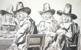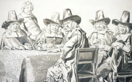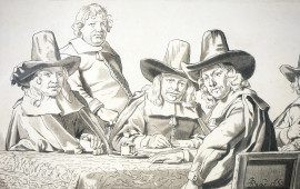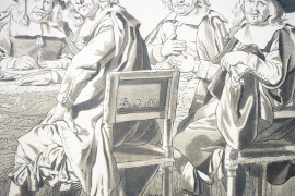Interno con figure, stampa, cm 22x29,5, entro cornice.