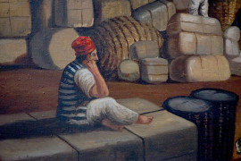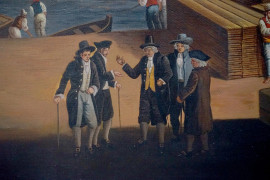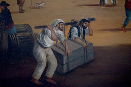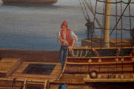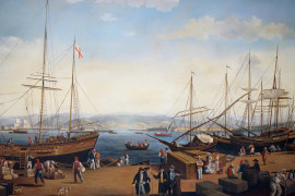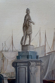 Jacob Philipp Hackert (1737-1807), Copia da, Veduta del Porto di Messina dal Palazzo del Senato, olio su tela, cm 150X260, entro cornice.