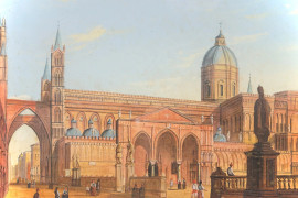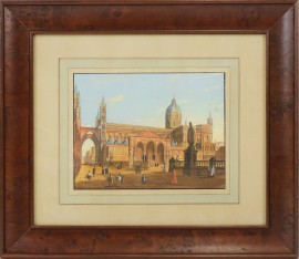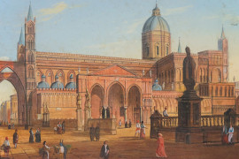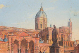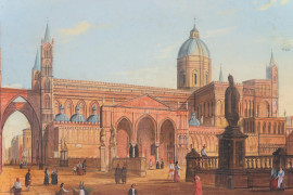 La Cattedrale di Palermo, acquarello su carta, cm 25,5x33, inizi XX secolo, entro cornice, (macchie sulla carta).