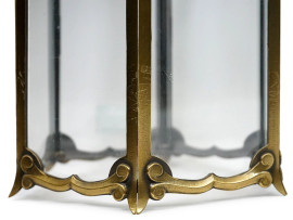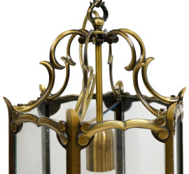 Lampadario a sospensione in metallo dorato e vetro, cm h 50