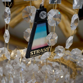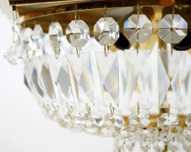 Lampadario con cristalli Swarovski, montatura in metallo dorato, XX secolo, cm h 28 circa