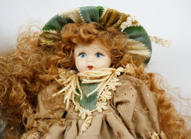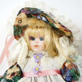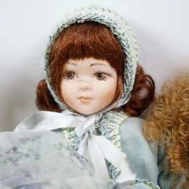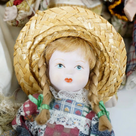 Lotto di dodici bambole in porcellana, vestiti in tessuto, alt. max cm 35, XX secolo.