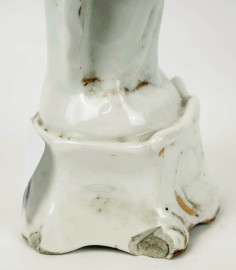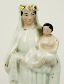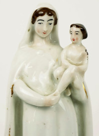 Lotto di due statuine in porcellana raffiguranti Madonna col Bambino, XIX secolo, alt. max cm 22, (difetti).