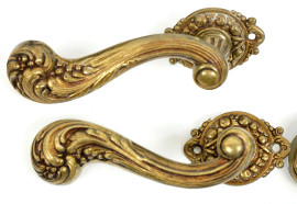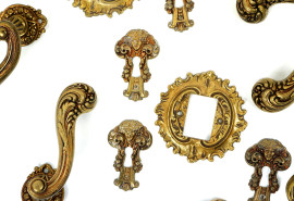 Lotto di ferramenta varia in bronzo dorato ed ottone, misure max cm 14, XX secolo, (difetti).